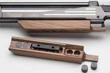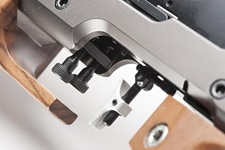 Bauteile Modell PRO: Diopter Centra Pro 57, Korntunnel Centra Score M22, Schaftkappe Pardini, Handauflage aus Ergal und Holz mit Satz interner und externer Gewichte (10), beidseitige Schaftbacke. Der Griff ist in 3 Größen für Rechtshänder (S - M - L) und einer für Linkshänder (M) erhältlich.