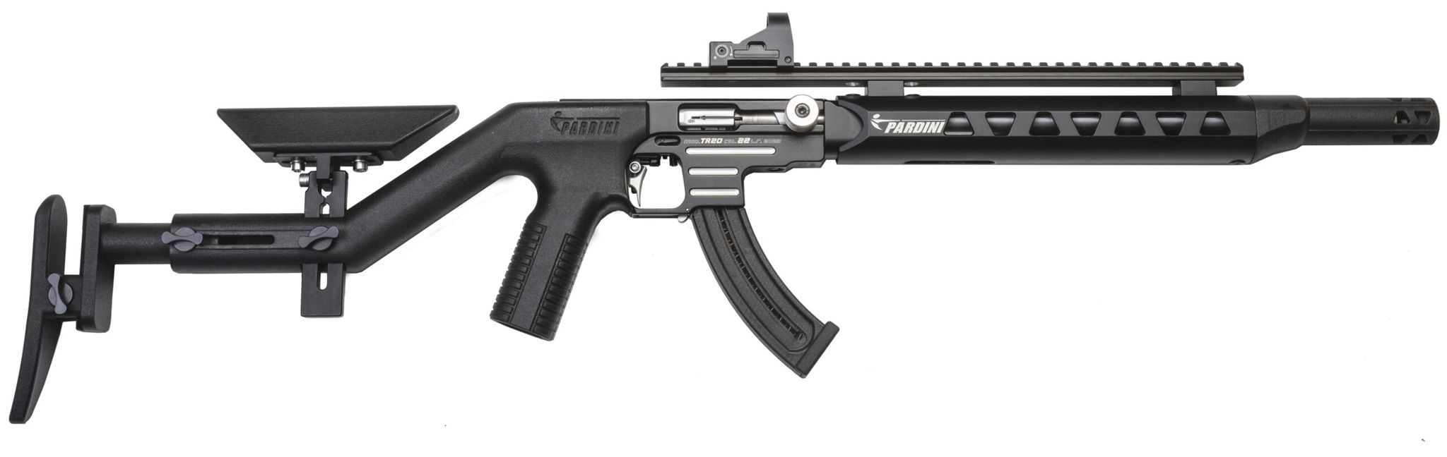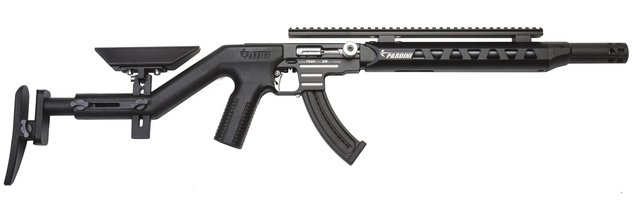 Der TR20-Karabiner ist eine halbautomatische Waffe, die für das Freizeit- und Sportschießen in den Disziplinen Minigewehr und taktisches Zielfernrohr 22 entwickelt wurde. Er entwickelt sich rund um den Lauf der SP-Pistole, von der sie den verstellbaren Verschluss und das in allen Parametern einstellbare Abzugssystem erbt. Ausgestattet mit einem 400-mm-Match-Lauf (410 mm für den US-Markt) mit Mündungskompensator, verfügt er über einen ergonomischen Griff mit verstellbarem Rückstoßpolster aus verstärktem Nylon. Auf der Laufabdeckung aus Aluminium ist ein langer Picatinny-Schlitten zur Befestigung von Zieloptiken aller Art angebracht. Er ist mit einem neuartigen 20-Schuss-Magazin ausgestattet.